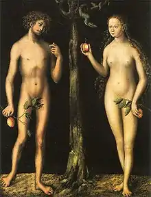 In the bedroom scene, both the negative and positive actions of the Lady are motivated by her desire.[40] Her feelings cause her to step out of the typical female role and into that of the male, thus becoming more empowered.[40] At the same time, those same actions make the Lady appear adulterous; some scholars compare her with Eve in the Bible.[87] By convincing Gawain to take her girdle, i.e., the apple, the pact made with Bertilak—and therefore the Green Knight—is broken.[88] Based on this, Gawain portrays himself, in what is often called his "antifeminist diatribe" later on, as a "good man seduced".[88]