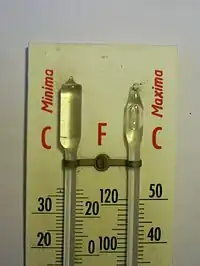 - ↑ Hamilton, John Montgomery; Perkins, Peter Graham (14 March 2006). "Maximum/minimum thermometer". Retrieved 16 April 2023.
