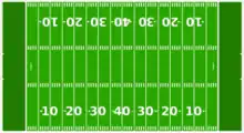 Six-man American football is played on an 80-yard-long (73-m) by 40-yard-wide (37-m) field in most circumstances; the high school rulebook allows games to be held on a normal 100-yd (91-m) by 5313-yd (48.8-m) field used in eleven-man football if the teams and leagues so choose. Furthermore, the game specifies a 15-yard distance (14-m) from the line of scrimmage to gain a first down, instead of the normal 10 yards (9 m).