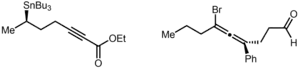 - ↑ In this gallery, double bonds have been shown in red and triple bonds in blue. This was added for clarity – multiple bonds are not normally coloured in skeletal formulae.