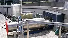Static testing of the engine precooler began in June 2011, marking the start of Phase 3 in the Skylon development programme,[25][46][47] In April 2012, Reaction announced that the first series of the precooler test programme had been successfully completed.[48] On 10 July 2012, Reaction announced that the second of three series of tests has been completed successfully, and the final series of tests would begin the following month after the testing facilities had been upgraded to allow testing of −150 °C (−238 °F) temperatures.[49][50] ESA's propulsion division audited the precooler tests during mid-2012 and found the results satisfactory.[9][51]