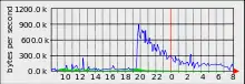 This graph shows the sudden surge in web traffic that a popular news story on Slashdot can cause.
