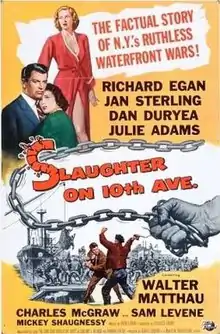 Slaughter on Tenth Avenue is a 1957 American film noir crime film directed by Arnold Laven and starring Richard Egan, Jan Sterling, Dan Duryea, Julie Adams.[1]