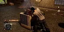 Sleeping Dogs is an action-adventure game[2][3] set in an open world environment and played from a third-person perspective. The player controls Wei Shen, a Chinese-American police officer who goes undercover and ventures out on a raid to infiltrate the Sun On Yee Triad organization.[4][5] The initial missions of the game are a linear tutorial for controlling the character.[6] After these missions, the player is allowed to explore the game's world and take part in side missions and other activities.[5] Shen navigates the world by running, jumping, climbing over obstacles, swimming,[7] and driving cars, boats and motorcycles.[8] The heads-up display (HUD) interface features a mini-map that indicates targets, key locations (safe houses and contact points) and Shen's current position. The mini-map incorporates two meters: one shows Shen's health and the other his face. When the face meter fills, upgrades are unlocked such as health regeneration, improved combat abilities and reduced equipment costs. The HUD also displays the weapon carried and its ammunition count.[9]