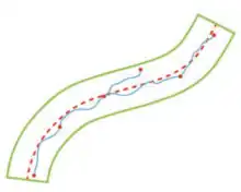The Snake Projection was originally developed by University College London and Network Rail to provide a continuous low distortion projection for the West Coast Mainline infrastructure works.[2] The parameters defining each Snake Projection are tailored for the specific project; the most typical use is with large-scale linear engineering projects such as rail infrastructure, however the projection is equally applicable to any application requiring a low distortion grid along a linear route (for example pipelines and roads).[3] The name of the projection is derived from the sinuous snake-like nature of the projects it may be designed for. Typical map projection distance distortion characteristics of a Snake Projection are minimal over the whole route within approximately 20 kilometres of the centre line.[4]