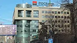 Rosbank head office in Moscow with the Société Générale logo, 2019