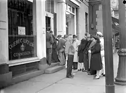 In 1921, an Alcoholic Beverages Act was passed and the Quebec Liquor Commission was established to conduct the trade of beer, wine and cider, and eventually spirits too. This provincial-owned corporation would then on exercise a legal monopoly on all distribution of alcohol in Quebec.[10] In its first year, the commission establishes a quality control laboratory, opens 64 stores selling 383 products, employs 415 people and grosses $15 million in sales.[11]