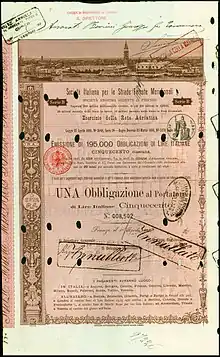 The Società per le Strade Ferrate Meridionali (Italian: Company for the Southern Railways, SFM) was an Italian railway company established in 1862. In 1885 it took the control of the so-called "Rete Adriatica" (Adriatic Network, RA). In 1905 the Rete Adriatica was absorbed by Ferrovie dello Stato (FS), one year later the FS acquired all the lines of the SFM.