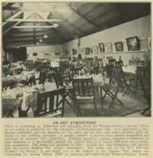 Despite lukewarm reviews, the Society of Women Painters offered many resources to both its members and to the art scene in Sydney generally. As well as organising annual exhibitions, they operated club rooms which were available for social and cultural events and organised concerts and lectures. For some years a social auxiliary supported and raised funds for the Society's art events. The architect Florence Taylor was active in this group, and she was an enthusiastic supporter of the Society over a number of years.[14] The Arts Club, which Taylor substantially ran in the 1920s, also assisted in fundraising for the Society, including bridge parties and card afternoons.[15] Most notable of the Society's undertakings was establishing a School of Fine and Applied Art in 1920 under the directorship of Eirene Mort. "The present venture was to become a means of broader instruction than the existing schools; applied arts were to be included in the curriculum."[16] A life class and landscape painting were other streams within the school. A number of prominent Sydney women artists taught at the school throughout the early and mid 1920s.
