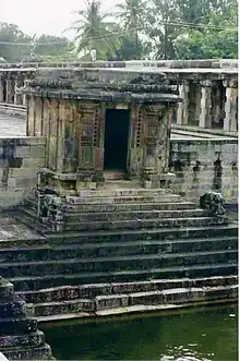 Trade on the west coast brought many foreigners to India including Arabs, Jews, Persians, Chinese and people from the Malay Peninsula.[5] Large scale migration of people from present day Karnataka to Tamil Nadu happened during this time. With the expansion of Hoysala territory in Tamil country, these immigrants went as officers and soldiers of the empire and were given land concessions.[6] Migration of Tamil sculptors to Belur and Halebidu is also apparent from the presence of some Chola style sculptures in a few Hoysala temples.[7] The marketplace was the nuclei of urban centres. This is where materials and produce was brought and exchanged hands. These were the location of recurring festivals and fairs. In South India, towns were called Pattana or Pattanam and the marketplace, Nagara or Nagaram. Important marketplaces gradually grew into townships and so did famous pilgrim places. Shravanabelagola in Hassan district developed from a place of religion in the 7th century to an important settlement by the 12th century when rich Jain merchants were established here. The market place was also closely tied with temple administration.