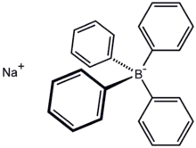 Sodium tetraphenylborate is the organic compound with the formula NaB(C6H5)4. It is a salt, wherein the anion consists of four phenyl rings bonded to boron. This white crystalline solid is used to prepare other tetraphenylborate salts, which are often highly soluble in organic solvents. The compound is used in inorganic and organometallic chemistry as a precipitating agent for potassium, ammonium, rubidium, and cesium ions, and some organic nitrogen compounds.