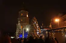 - ↑ In late 2010 a UNESCO monitoring mission was visiting the Kyiv Pechersk Lavra to check the situation of the site. At the time the Minister of Culture Mykhailo Kulynyak stated the historic site along with the Holy Sophia Cathedral was not threatened by the "black list" of the organization.[3] The World Heritage Committee of UNESCO decided in June 2013 that Kyiv Pechersk Lavra, and St Sophia Cathedral along with its related monastery buildings would remain on the World Heritage List.[2]