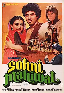 Sohni Mahiwal (Hindi: सोनी महिवाल, Russian: Легенда о любви, romanized: Legenda o lyubvi) is a 1984 Indo-Russian historical romance drama film based on the story of Sohni Mahiwal, directed by Umesh Mehra and Latif Faiziyev (Russia), produced by F. C. Mehra. It stars Sunny Deol, Poonam Dhillon and Zeenat Aman in pivotal roles.[2] The writers were Shanti Prakash Bakshi and Javed Siddiqui. The music was scored by Anu Malik. Choreographer P. L. Raj. The film was a commercial success with a net collection of ₹3.2 crore.[3]