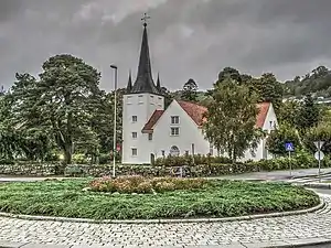 The earliest existing historical records of the church date back to the year 1307, but the church was not new at that time. Records from the 1600s refer to the church as Sankt Jakobs kirke, so it was likely dedicated to Saint Jacob. The medieval church stood on the site for centuries and over time it was renovated, repaired, and rebuilt. Records show that from 1734 to 1740, the church underwent an extensive renovation project to repair the very old church. It is likely that by then the church bared little resemblance to the original church but rather looked like a patchwork of old an old stave church and newer timber-framed construction. Around the turn of the 19th century, the old church was torn down and a new building was constructed on the same site. The new cruciform church was partially completed in 1803 when it was put into use. It was finished over the next four years and it was consecrated on 8 July 1807.[3][4]