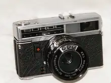 Sokol and Sokol-2 were Soviet 35 mm photo camera brands. In 1966–1986, more than 400,000 were produced by LOMO. Some were exported to Europe. The price of the camera in 1977 was 145 rubles, almost one and a half times more expensive than the mirror "Zenith-E" with interchangeable optics. For Soviet photographers, Sokol proved to be too expensive, and for professional photography it was unsuitable. In 1978, the production of the camera was discontinued, a total of 226,600 copies that came off the assembly line, as well as 1,000 cameras called "LOMO-130A".[1]
