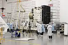 Solar Orbiter spacecraft is prepared for encapsulation in the United Launch Alliance Atlas V payload fairing.