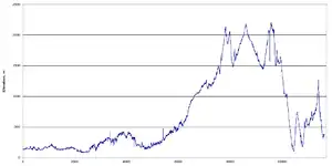 In addition, elevation changes over a race route can dramatically change the amount of power needed to travel the route. For example, the 2001 and 2003 North American Solar Challenge route crossed the Rocky Mountains (see graph at right).
