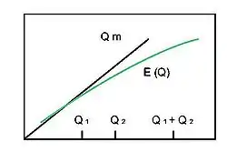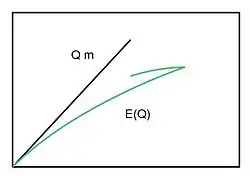 As the charge Q grows and E(Q) the order of , the gravitation becomes important for NTS. A proper name for such an object is a star. A boson-field Q-star looks like a big Q-ball. The way gravity changes E(Q) dependence[14] is sketched here. It is the gravity what makes for Q-star — stabilize it against the fission.