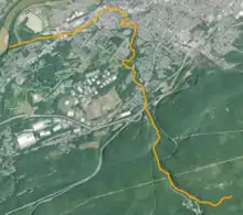 Solomon Creek has an orange color as it flows past Wilkes-Barre, due to acid mine drainage.[5]