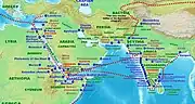 In antiquity, the ancestors of the Somali people were an important link in the Horn of Africa connecting the region's commerce with the rest of the ancient world. Somali sailors and merchants were the main suppliers of frankincense, myrrh and spices, items which were considered valuable luxuries by the Ancient Egyptians, Phoenicians, Mycenaeans and Babylonians.[2][3] During the classical era, several ancient city-states such as Ophir at the time Berbera and Ras Hafun and Hiran then part of Mogadishu competed with the Sabaeans, Parthians and Axumites for the wealthy Indo-Greco-Roman trade also flourished in Somalia.[4] In the Middle Ages, several powerful Somali empires dominated the regional trade including the Ajuran Sultanate, the latter of which maintained profitable maritime contacts with Arabia, India, Venetia,[5] Persia, Egypt, Portugal and as far away as China. This tradition of seaborne trade was maintained in the early modern period, with Berbera being the pre-eminent Somali port during the 18th–19th centuries.[6]