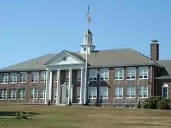 A 2010 report by the New England Association of Schools and Colleges (NEASC) declared that the physical condition of the current high school building “does not adequately support” educational programs and support services.[13] Difficult conditions in the building include “a lack of adequate space in certain instructional areas”, limited handicapped accessibility, out-of-date fire safety equipment, a small gymnasium space, and poor ventilation.[14] Questions about the structural integrity of the building's foundation led to some areas of the building being condemned during the 2008–2009 school year. The building was originally constructed as a project of the Works Progress Administration, but has since grown considerably with the addition of several new wings over the years.