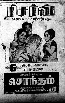 Sontham (transl.Belonging) is a 1973 Indian Tamil-language drama film directed by A. C. Tirulokchandar. The film stars Muthuraman and K. R. Vijaya. It is based on the play of the same name by Karaikudi Narayanan. The film was released on 6 July 1973