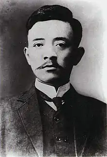 Song Jiaoren (Chinese: 宋敎仁; Chinese: 宋教仁; pinyin: Sòng Jiàorén; Wade–Giles: Sung Chiao-jen, [sʊ̂ŋ tɕjâʊɻə̌n]; Given name at birth: Liàn 鍊; Courtesy name: Dùnchū 鈍初) (5 April 1882 – 22 March 1913) was a Chinese republican revolutionary, political leader and a founder of the Kuomintang (KMT). Song Jiaoren led the KMT to electoral victories in China's first democratic election. He based his appeal on the upper class gentry, landowners, and merchants. Historians have concluded that provisional president, Yuan Shikai, was responsible for his assassination on March 20, 1913.[1]