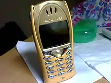 The Ericsson T68m (often called simply T68) was a candy-bar style mobile phone by Ericsson Mobile Communications. Launched in time for the 2001 Christmas season, the T68 was the first Ericsson mobile phone to have a colour screen, a passive LCD-STN with a resolution of 101×80 and 256 colours. Despite its diminute size (3.94×1.89×0.79 in or 100×48×20 mm, 2.96 oz or 84 g), it was one of the most feature-rich mobile phones at the time, with Bluetooth, IrDA port, GPRS 3+1, tri-band compatibility (900 MHz, 1800 MHz and 1900 MHz), SMS with T9 (predictive text), EMS, WAP, and customizable monophonic ring tones. A simple bitmap image editor was provided, allowing the creation of monochrome pictures by guiding a cursor around the canvas and setting or unsetting individual pixels (several 'brush' sizes were selectable to make this easier). These images could be set as the phone's background image in standby mode, and sent to owners of EMS-compliant phones. With EMS soon to be succeeded by the superior MMS, few owners made much use of this feature. At its release, the phone cost around 500, GBP299 in the UK, in either two-tone grey or all-gold.
