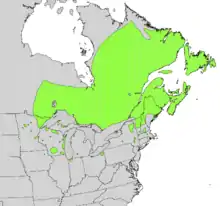 | Natural range includes southern tip of Greenland (not shown) | |