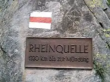 Near the "source of the Rhine" at Lake Toma, there is a well-known sign with the erroneous information, "1320 km to the mouth"; it is only about 1230 km. The number of 1320 km is widespread. It is unclear whether it refers to the river length as measured from Lake Toma. It may be the result of transposing digits.