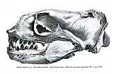 Adult males have large heads with short, upturned snouts and long manes which reach the shoulders.[5] The fur is mainly brownish with adult males being dark brown and females being nearly yellowish. Pups are born black but become reddish-brown after their first molt.[3]