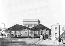 The first Dudley station was a terminus north-east of Tipton Road; for a time the SSR Was the only railway with a presence in Dudley. In 1852 the Oxford, Worcester and Wolverhampton Railway opened its line as far as Dudley, and the South Staffordshire Railway opened a new station adjacent to the OW&WR station, but not connected to it. The OW&WR continued northwards the following year.[18] The configuration of the two stations was still unsatisfactory, and an improved station connected to the OW&WR line platforms was opened in 1859.[21]