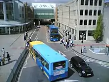 There are two main termini for bus services. The city's main operator Bluestar uses the stops around Houndwell Park, where the services may pass or terminate there. This leaves the other terminal of Westquay available for other operators. Unilink passes Westquay in both directions (except the U2 which terminates at the Civic Centre), and Salisbury Reds drop passengers off there, terminating at a series of bus stands along the road. Once back in service, buses turn round and pick up passengers at Westquay again.