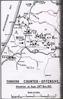 - XXII Corps commanded by Refet Bey with headquarters at Jebaliye holding the strongly fortified positions around Gaza with the 3rd, 53rd Divisions