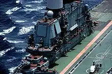 The biggest change to the weapon systems was the replacement of the 4K60 (SA-N-3 'Goblet') and 9K33 Osa (SA-N-4 'Gecko') SAM launchers with four SA-N-9 'Gauntlet' VLS launchers. This allowed room for another two 4K80 (SS-N-12 'Sandbox') launchers. The two AA guns of the Kievs were replaced with 100 mm guns, and the SUW-N-1 launcher was removed.