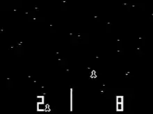 Space Race is an arcade game developed by Atari, Inc. and released on July 16, 1973. It was the second game by the company, after Pong (1972), which marked the beginning of the commercial video game industry along with the Magnavox Odyssey. In the game, two players each control a rocket ship, with the goal of being the first to move their ship from the bottom of the screen to the top. Along the way are asteroids, which the players must avoid. Space Race was the first racing arcade video game and the first game with a goal of crossing the screen while avoiding obstacles.