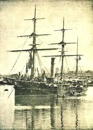 Conde de Venadito was a Velasco-class unprotected cruiser of the Spanish Navy. It was built at the naval shipyard at Cartagena, Spain, in 1883, and was completed and launched five years later. In 1895, she unsuccessfully attempted to sink the American merchant ship Allianca off Cape Maisi, Cuba, under the suspicion that she was smuggling arms to the Cuban insurgents.[1] She was stricken from the register in 1907 and was finally sunk in 1936 as a target ship.[2]