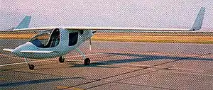 The aircraft was made from composite materials. Its 34.0 ft (10.4 m) span wing, mounted wing-tip rudders and had a wing area of 147.0 sq ft (13.66 m2). The cabin width was 22 in (56 cm). The design power range was 90 to 125 hp (67 to 93 kW) and the standard engine used was the 118 hp (88 kW) Subaru EA82 automotive-conversion powerplant.[1]