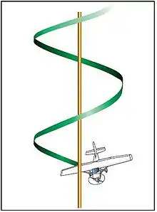 In flight dynamics a spin is a special category of stall resulting in autorotation (uncommanded roll) about the aircraft's longitudinal axis and a shallow, rotating, downward path approximately centred on a vertical axis. Spins can be entered intentionally or unintentionally, from any flight attitude if the aircraft has sufficient yaw while at the stall point.[1] In a normal spin, the wing on the inside of the turn stalls while the outside wing remains flying. It is possible for both wings to stall, but the angle of attack of each wing, and consequently its lift and drag, are different.[2]