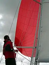A spinnaker pole is a spar used in sailboats (both dinghies and yachts) to help support and control a variety of headsails, particularly the spinnaker. However, it is also used with other sails, such as genoas and jibs, when sailing downwind with no spinnaker hoisted. (Since the load on a spinnaker pole is very light on this point of sailing, sometimes a special light spinnaker pole called a whisker pole is used in these circumstances.)