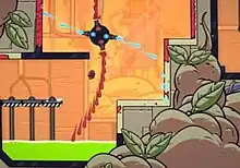 Splasher is a 2D platform game in which the player controls a purple-haired character who has to go through 22 levels, all of which take place inside of the Inkorp factory and involve the use of the splasher's paint gun.[2] Each of the levels consist of seven of the protagonist's fellow workers to collect, which are known as splashers. Six of the splashers are hidden throughout the levels, while the seventh is at the end of every level and requires 700 'Golden Ink', which is also found throughout the levels.[2][3]