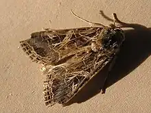Spodoptera littoralis, also referred to as the African cotton leafworm or Egyptian cotton leafworm or Mediterranean brocade, is a species of moth in the family Noctuidae. S. littoralis is found widely in Africa, Mediterranean Europe and Middle Eastern countries. It is a highly polyphagous organism that is a pest of many cultivated plants and crops.[1] As a result, this species was assigned the label of A2 quarantine pest by the EPPO and was cautioned as a highly invasive species in the United States.[2][3] The devastating impacts caused by these pests have led to the development of both biological and chemical control methods.[4] This moth is often confused with Spodoptera litura.[4]