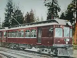 ![]() Spokane and Inland Empire Railway No. 8. near Coeur d'Alene. Built by J. G. Brill. (1910) | |