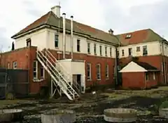 Kingseat Hospital was in operation from 1932.[8] In 1939, the Public Works Department and Fletcher Construction Company, Ltd. agreed on the construction of a two-storey nurses home at Kingseat Hospital, with the government to provide the steel for the building.[9] The hospital grew throughout the mid-late 1930s and 1940s to such an extent that by the beginning of 1947, there were over eight hundred patients.[7] During the 1950s, Dr. Henry Bennett (the man whom the mental health wing at Waikato Hospital is named after) was a senior medical officer of health at Kingseat Hospital.[10] From 1964, nursing staff at Kingseat were given name tags to wear on their uniforms.[7] In 1968, certain nurses at Kingseat Hospital went on strike, which forced the administration to invite unemployed people and volunteers to assist within the hospital grounds with domestic chores.[8] In 1973, a therapeutic pool was opened by the then-Mayoress of Auckland, Mrs. Barbara Goodman, four years before the main swimming pool was added to the hospital in 1977. The site celebrated its 50th anniversary jubilee in 1982.[7] During the 1970s and 1980s, there were many places attached to psychiatric hospitals in New Zealand where alcoholics were treated for their drinking addictions and Villas 4 and 11 at Kingseat Hospital served this purpose.[11] In later years, the hospital accepted voluntary patients.[12] In 1996, South Auckland Health sold Kingseat Hospital after government decisions to replace ongoing hospitalisation of mentally ill patients with community care and rehabilitation units. This led to the eventual closure of Kingseat Hospital in July 1999, when the final patients were re-located off the complex to a mental health unit in Ōtara.[13]