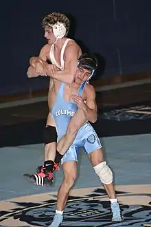 ![]() Two wrestlers competing in an amateur wrestling match | |