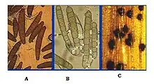 Spot blotch is a leaf disease of wheat caused by Cochliobolus sativus.[1][2] Cochliobolus sativus also infects other plant parts and in conjunction with other pathogens causes common root rot and black point.