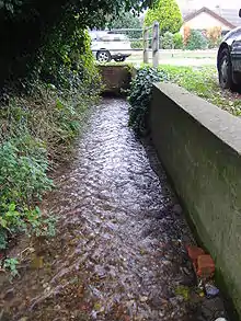 By rights Spring Beck should flow down Beach Road on the northern side of the village, which clearly was the original watercourse, and indeed for a short way an upper overflow channel does just that. The beck's course was modified in the eighteenth century as part of the construction of a watermill and it was dammed to create a substantial mill pond.