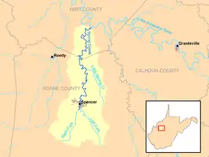 Spring Creek is a tributary of the Little Kanawha River in western West Virginia in the United States. Via the Little Kanawha and Ohio rivers, it is part of the watershed of the Mississippi River, draining an area of 89 square miles (230 km2)[5] in a rural region on the unglaciated portion of the Allegheny Plateau. It is 25.3 miles (40.7 km) long, or 33.3 miles (53.6 km) long including its Left Fork.[6]