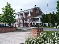 Spring House is a historic inn located at Pittsford in Monroe County, New York. It is a 2+1⁄2- to 3+1⁄2-story brick building constructed into a hillside that, at the time, overlooked the Erie Canal. (The canal has long since been rerouted to the south.) The structure dates to 1832 and was built as a health spa located at Monroe Springs, a set of sulphur springs.[2] It serves as a restaurant on busy Monroe Avenue.