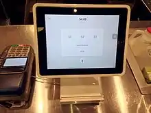 Square Register is a standalone point-of-sale system.[23] It consists of a merchant tablet and a customer tablet, with a built-in swipe, chip, and contactless reader.[38]